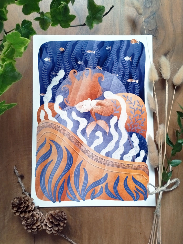 Dans la série d'illustrations Petits Dormeurs, voici le Bébé Sirène.